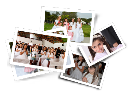Cubrimiento desde el ensayo, Ceremonia de la Luz, sesión fotográfica familiar el día de la ceremonia y durante el desarrollo de la Primera Comunión.