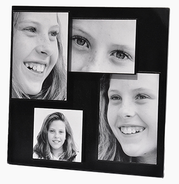 • Marco para colgar con cuatro fotos en blanco y negro.